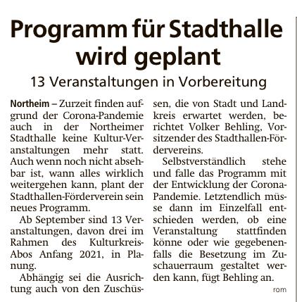 Alle Anfragen zu den Veranstaltungen richten Sie bitte immer an den jeweiligen Veranstalter.