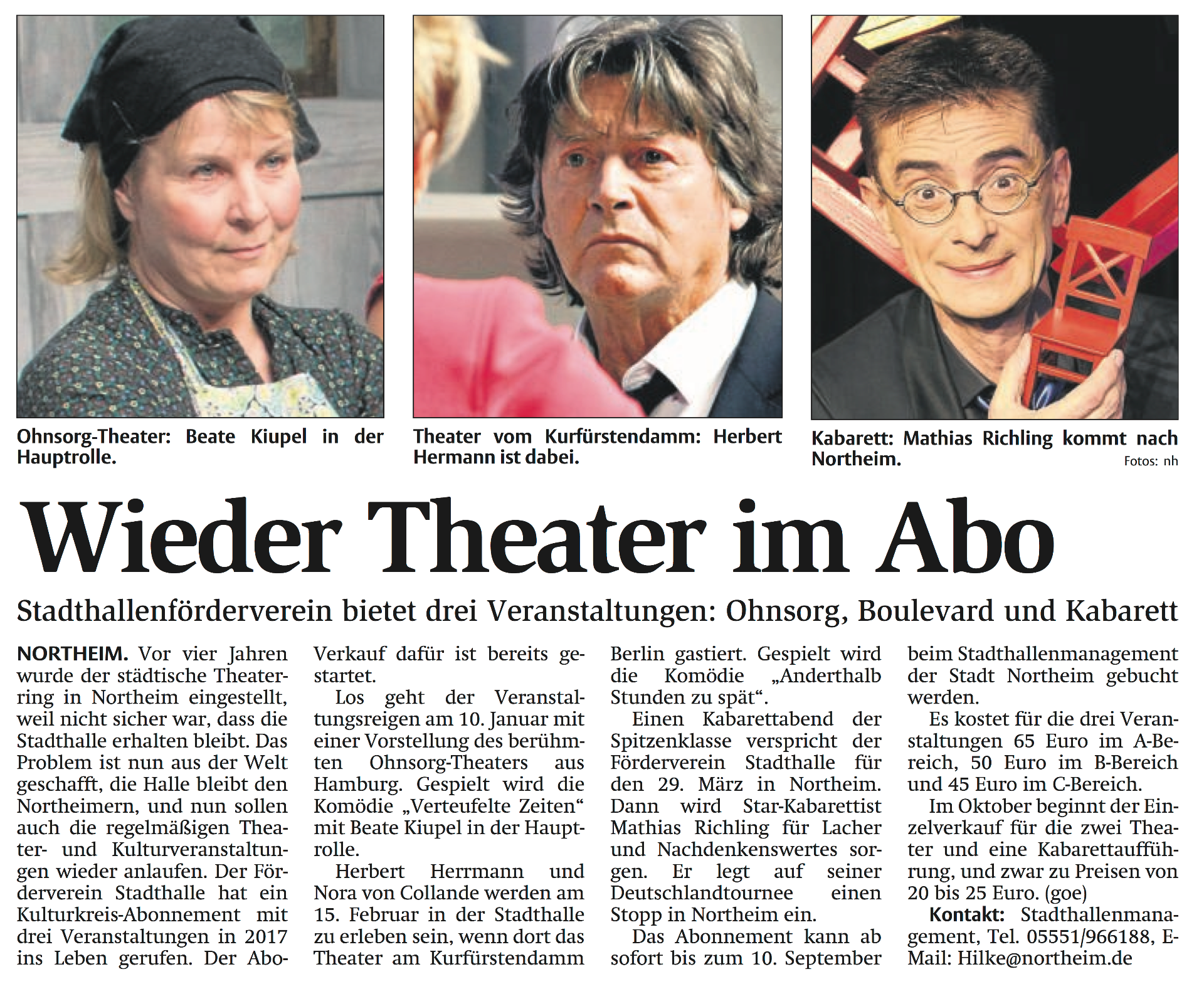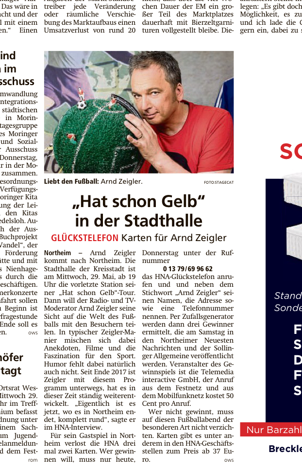 Karten werden durch die Vorverkaufsstellen verkauft.